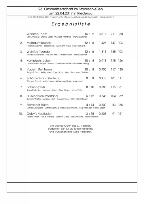 Die Mannschaft der Maibaumfreunde erreichte bei der Ortsmeisterschaft 2017 im Stockschießen den 2. Platz
